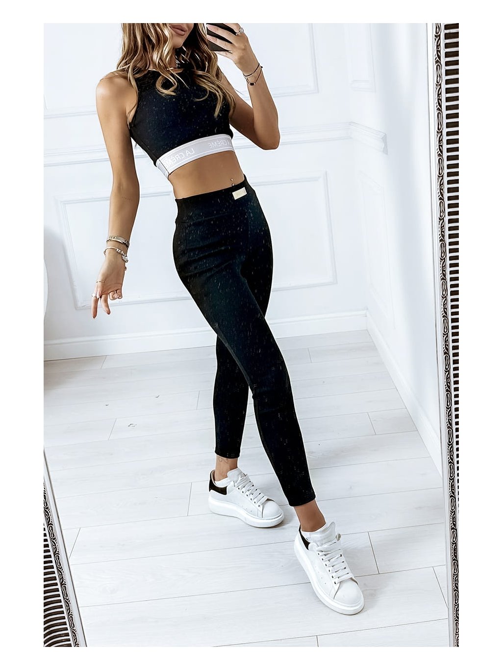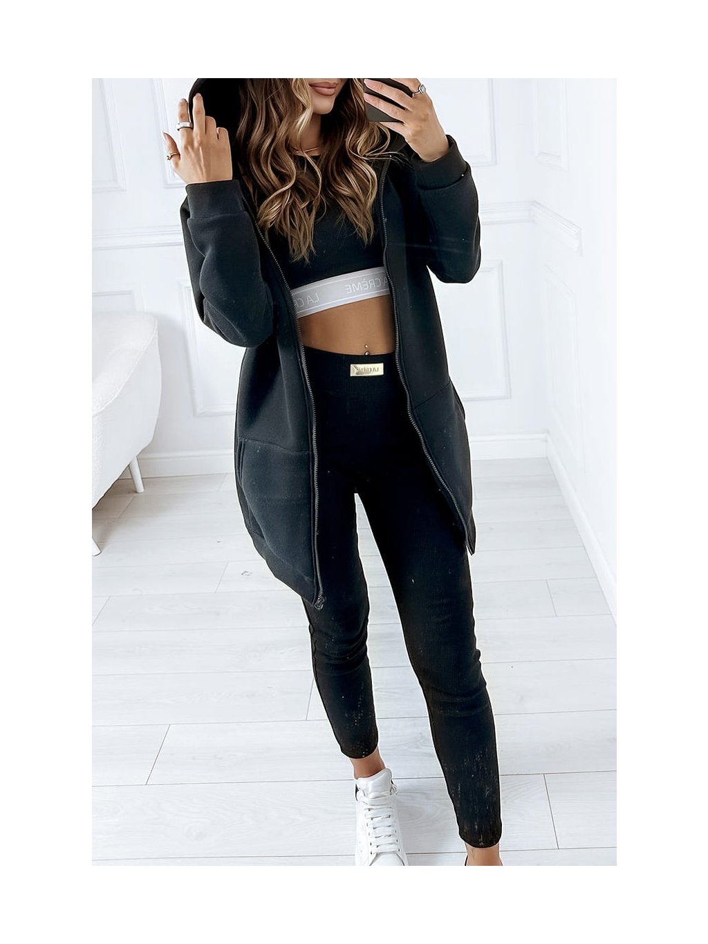 Objevte tuto jedinečnou sadu, která se skládá z dlouhé zateplené mikiny s velkou kapucí, legín a topu s gumou s logem. Mikina poskytuje teplo a pohodlí, zatímco top a legíny perfektně padnou na postavu. Perfektní volba na podzimní dny!