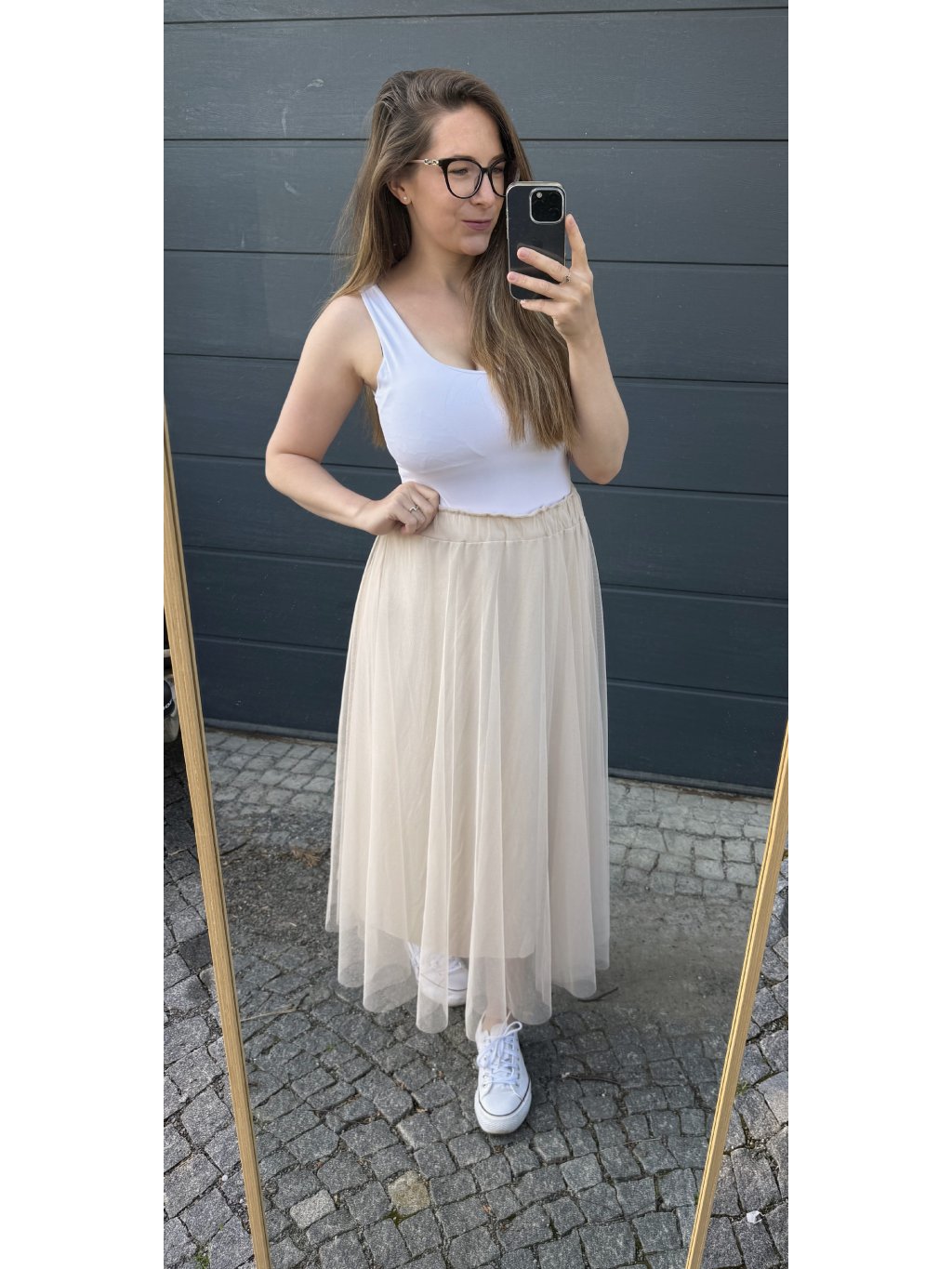 Oblékni krásnou tylovou sukni a užij si jarní dny naplno. Sukně se hodí k teniskám, výhodou je guma v pase.