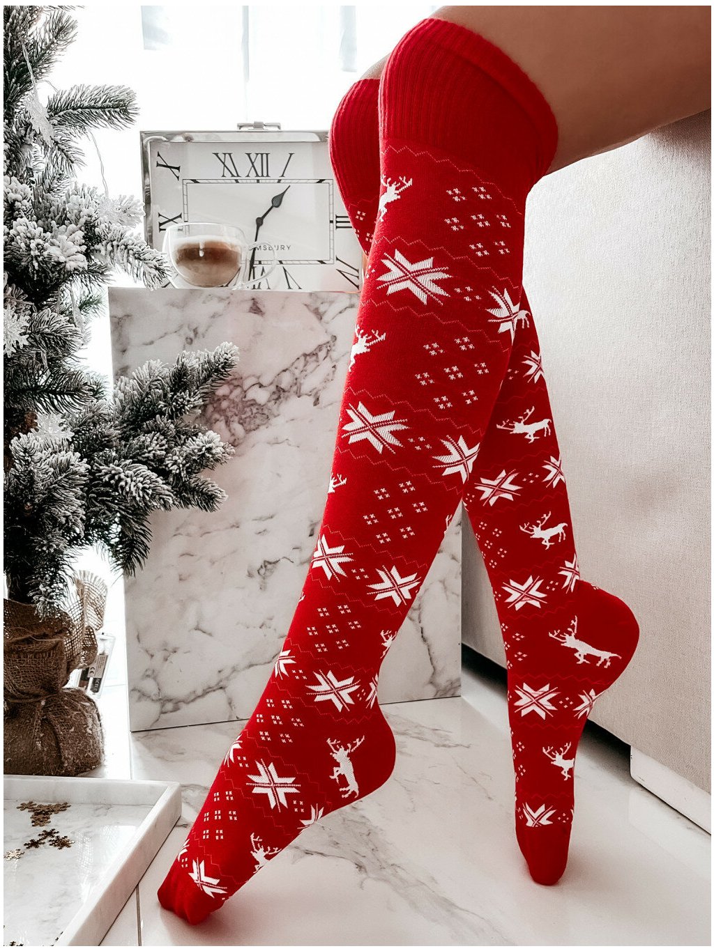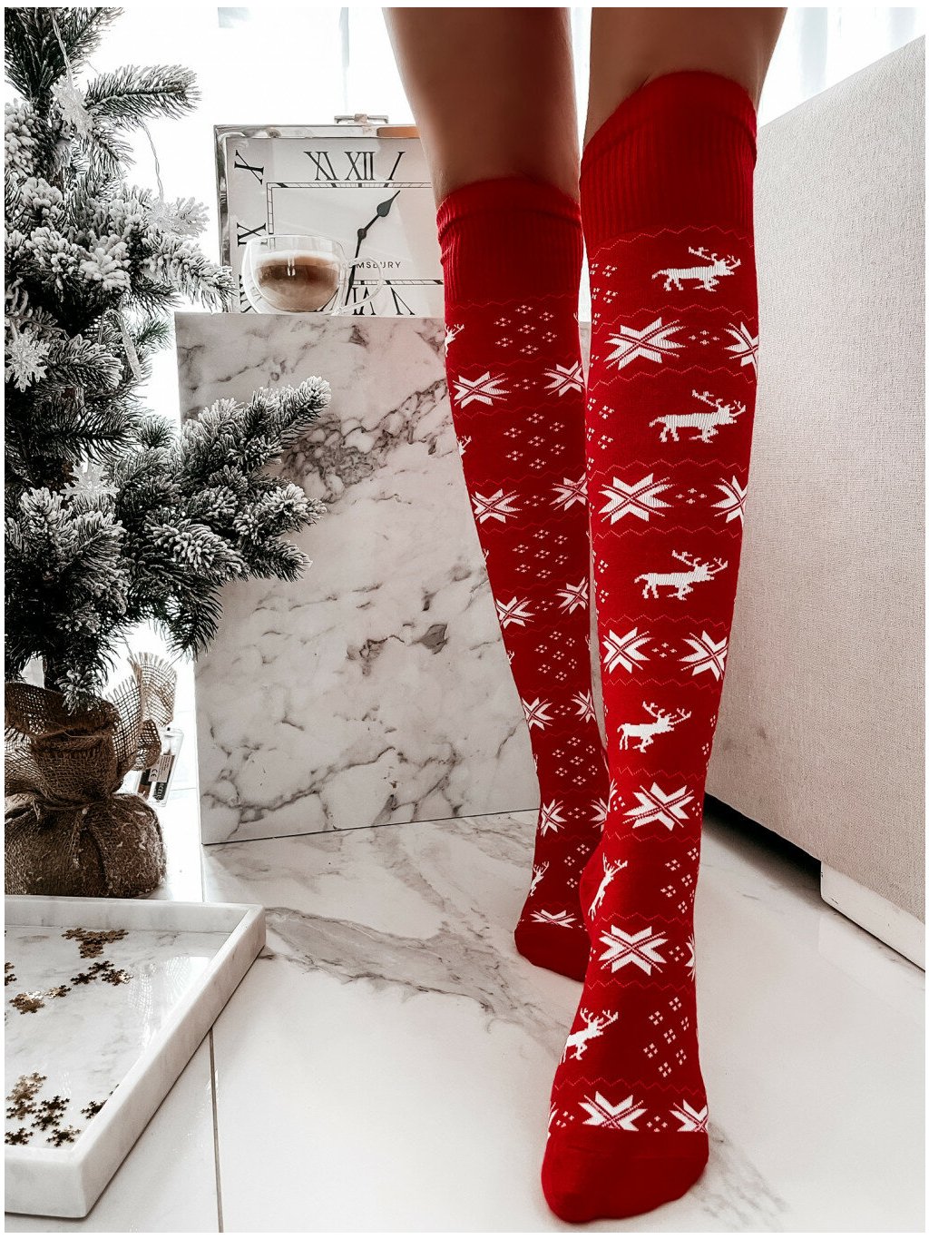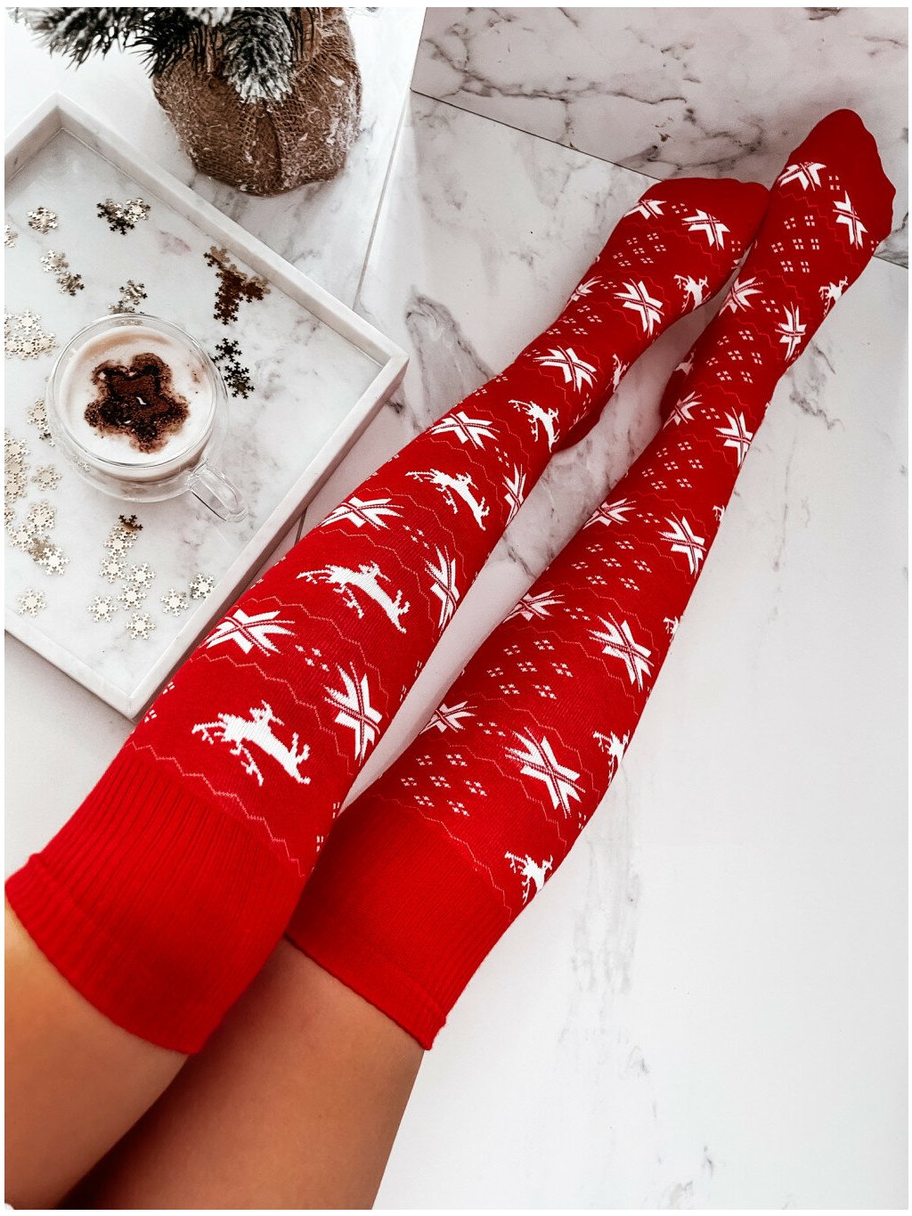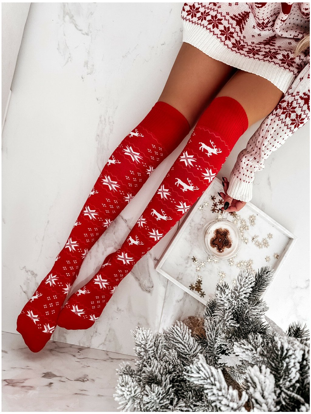 Dokonalé vysoké modní nadkolenky s vánočním motivem